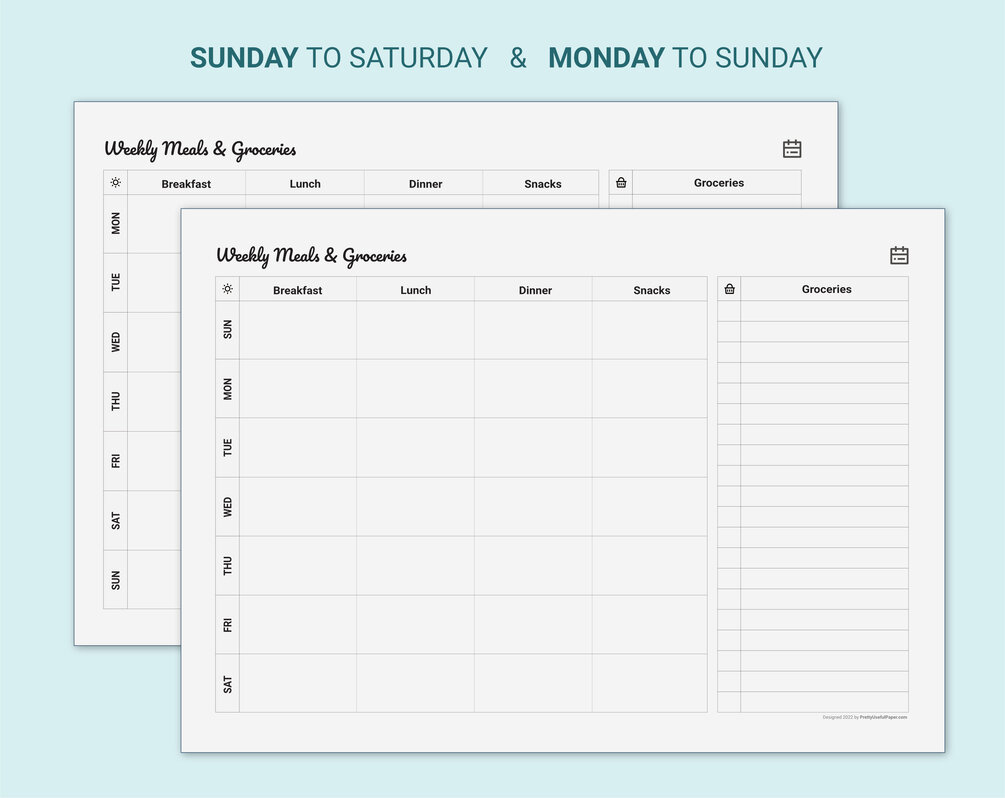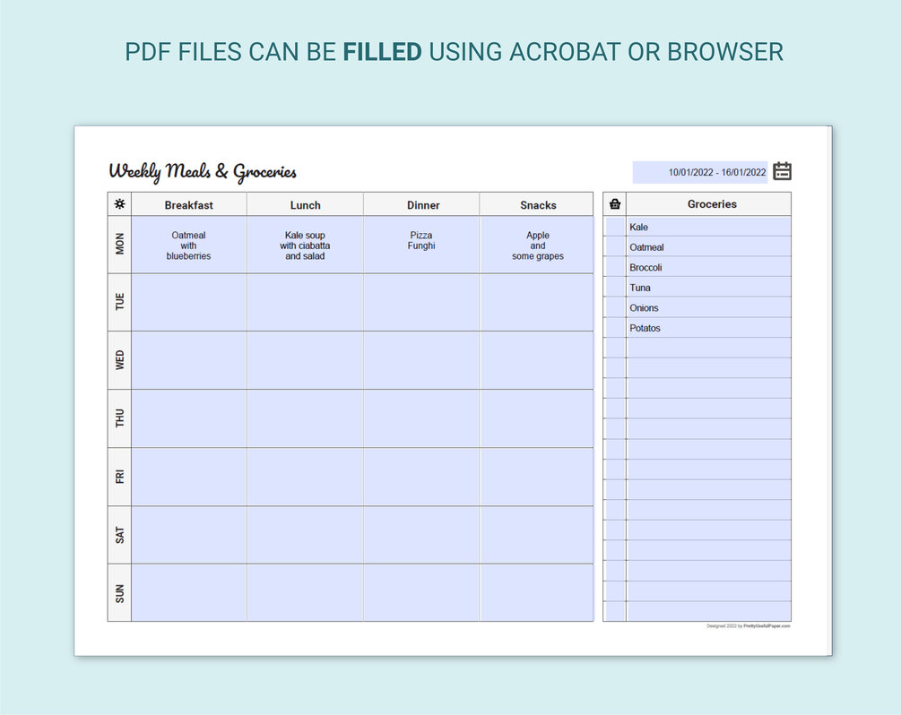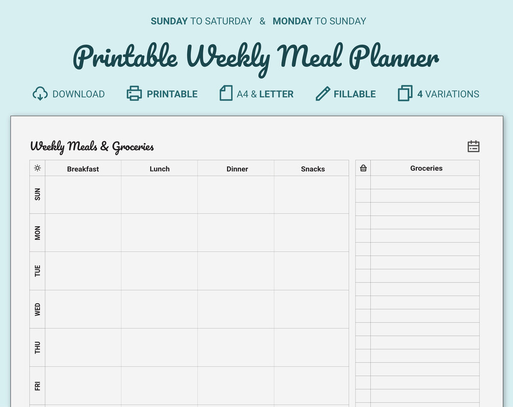 Weekly Meal Planner & Grocery List | Fillable PDF Files | A4, Letter
